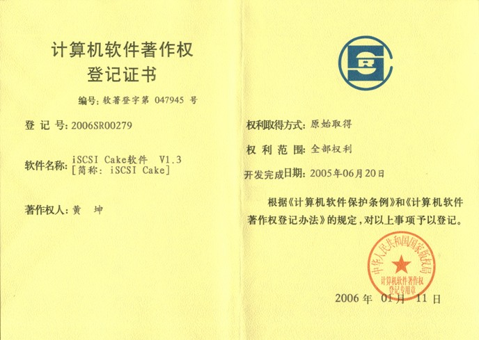 版权证明遥志网络虚拟硬盘CCDisk在1.5版本之前叫做iSCSI Cake,为了方便大家记忆,自1.5版本以后称做遥志网络虚拟硬盘CCDisk,简称遥志虚拟盘CCDisk。这是我们的版权证明。